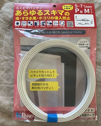 家を建てて15年になるが、備え付けの食器棚の隙間テープが劣化して、ボロボロになってきた。数年前からホームセンターや100円均一やネットでも探してみては、家に合うのが見つけられず困っていた。