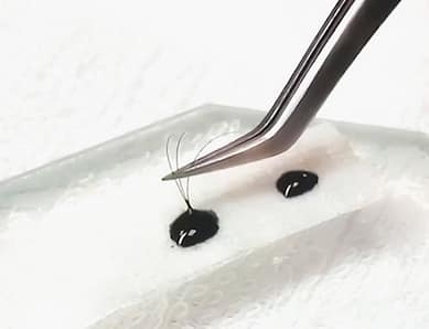 ファンを作り装着していくやり方。自まつげが少ない本数でもボリューム感を出すことができるので、自まつげが少ない方や細い方でもフサフサにすることが可能