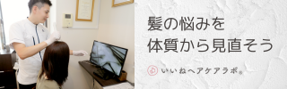 ③次に内部の補修、ヘアカラーで流出しやすいアミノ酸の補給により毛髪に潤いを与え、ヘアカラー後のパサつき(乾燥)を抑える