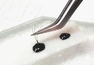 1本の自まつ毛に対し、数本のエクステを付ける。